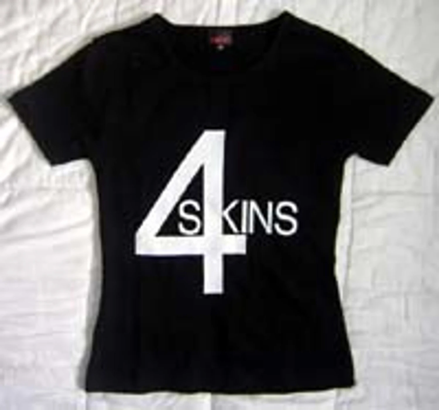 schwarzes Girlie Shirt mit großem weißem Druck auf der Brust.