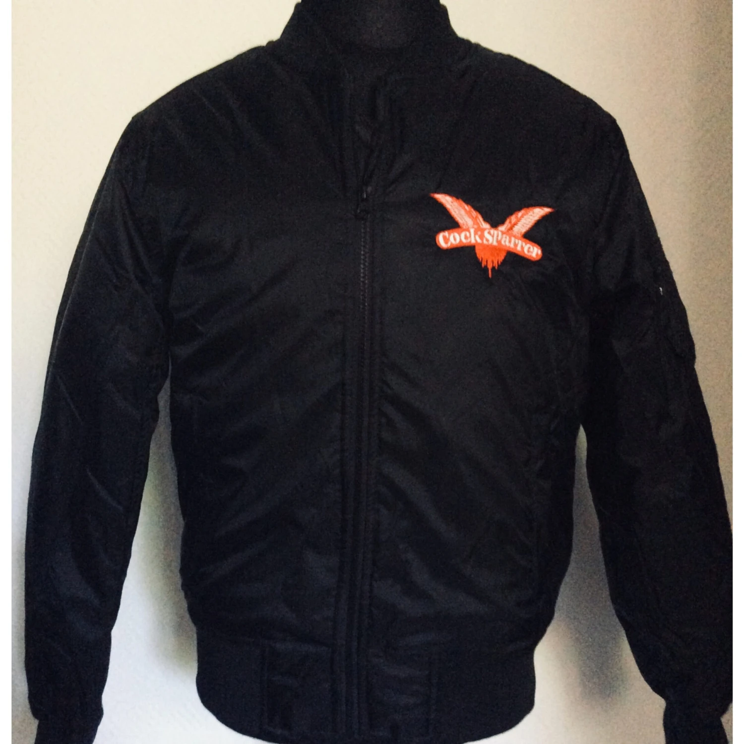 Schwarze Bomberjacke mit Herzstick.</p>n