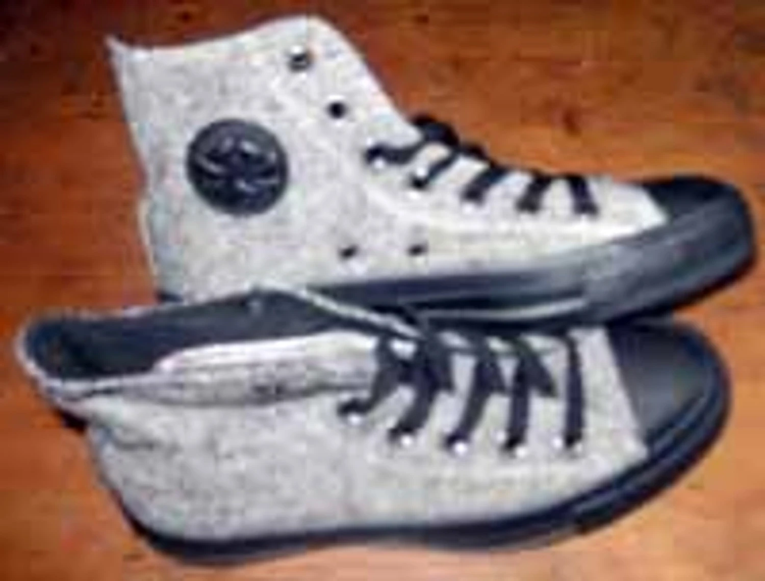 CONVERSE HIGH. Der Turnschuh. Aus textilem Obermaterial mit Logodruck am Innenknöchel. … … Flexible Laufsohle aus Gummi. Der Schuh ist in fein schwarz/weiß kariertem Tweed- Sehr oldschool.
