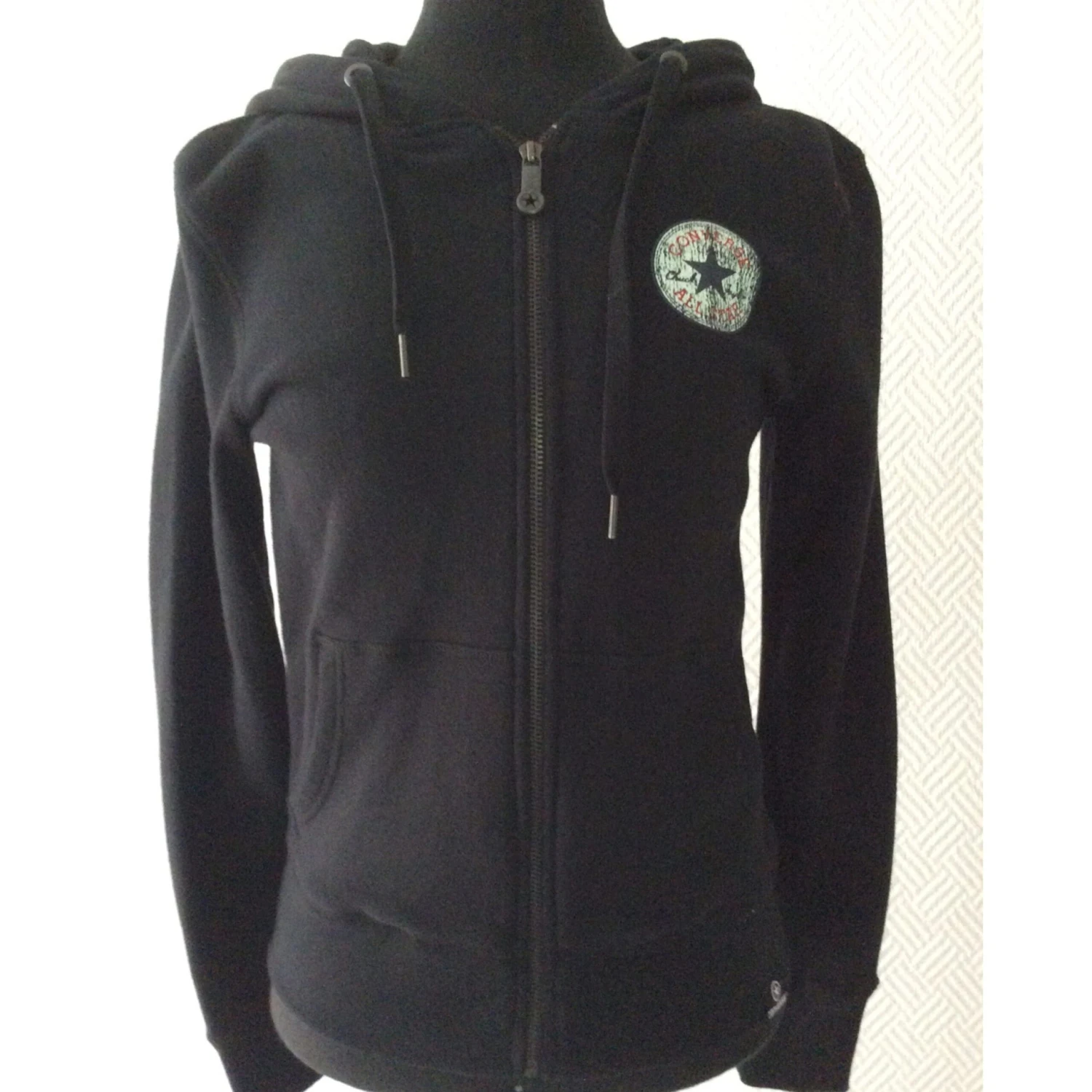 Schwarze Girlie Kapuzensweatjacke mit seitlichen Bauchtaschen.</p>n