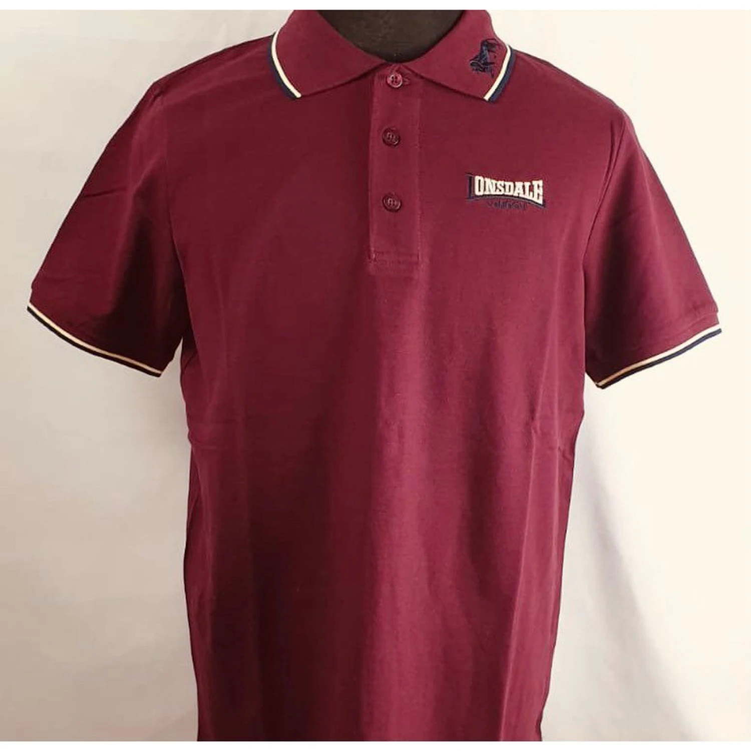 Bordofarbenes Polo mit gesticktem Logo auf der Brust, kleines Logo auf dem Ärmel, Kontraststreifen in dunkelblau / weiß. </p>
