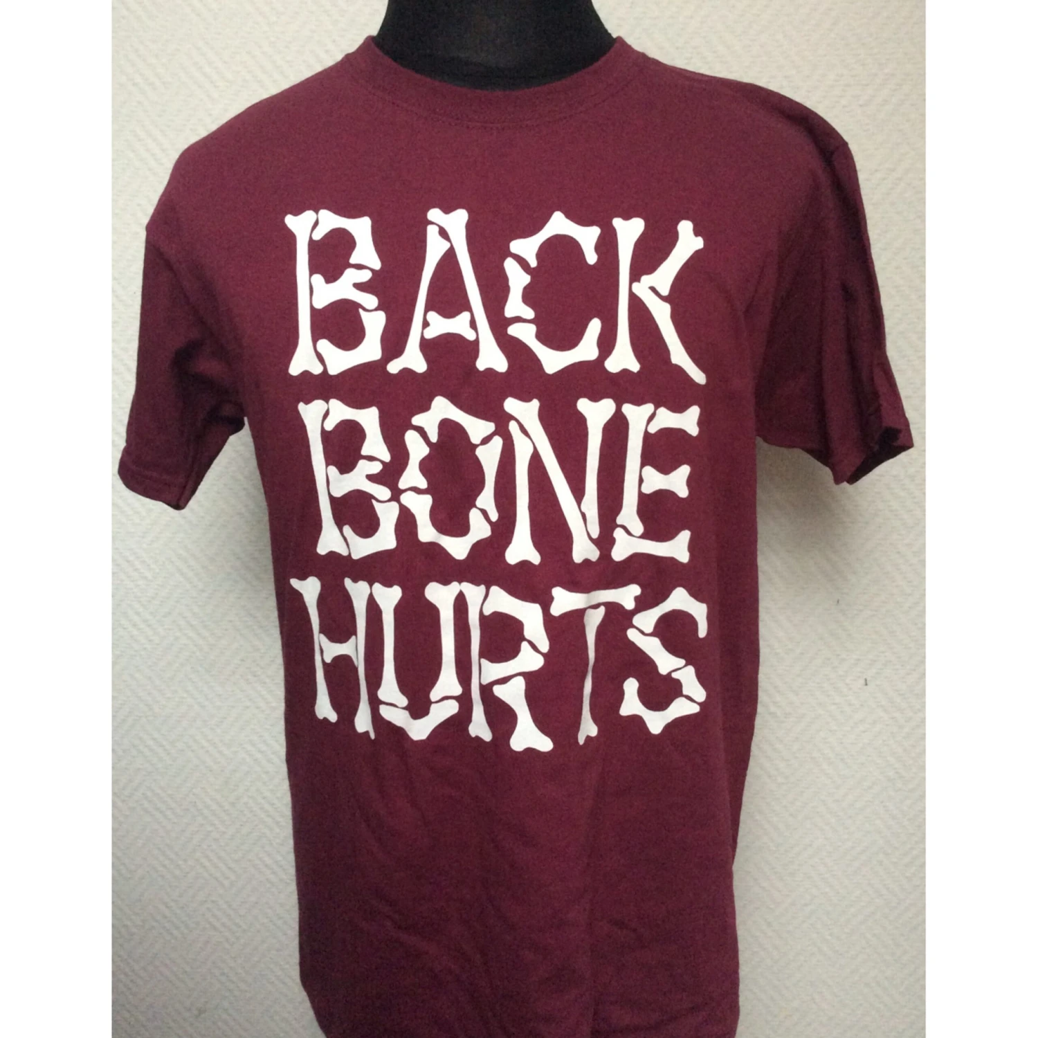 Bordofarbenes T-Shirt Fruit of the Loom valueweight. Großer Brustdruck.</p>n