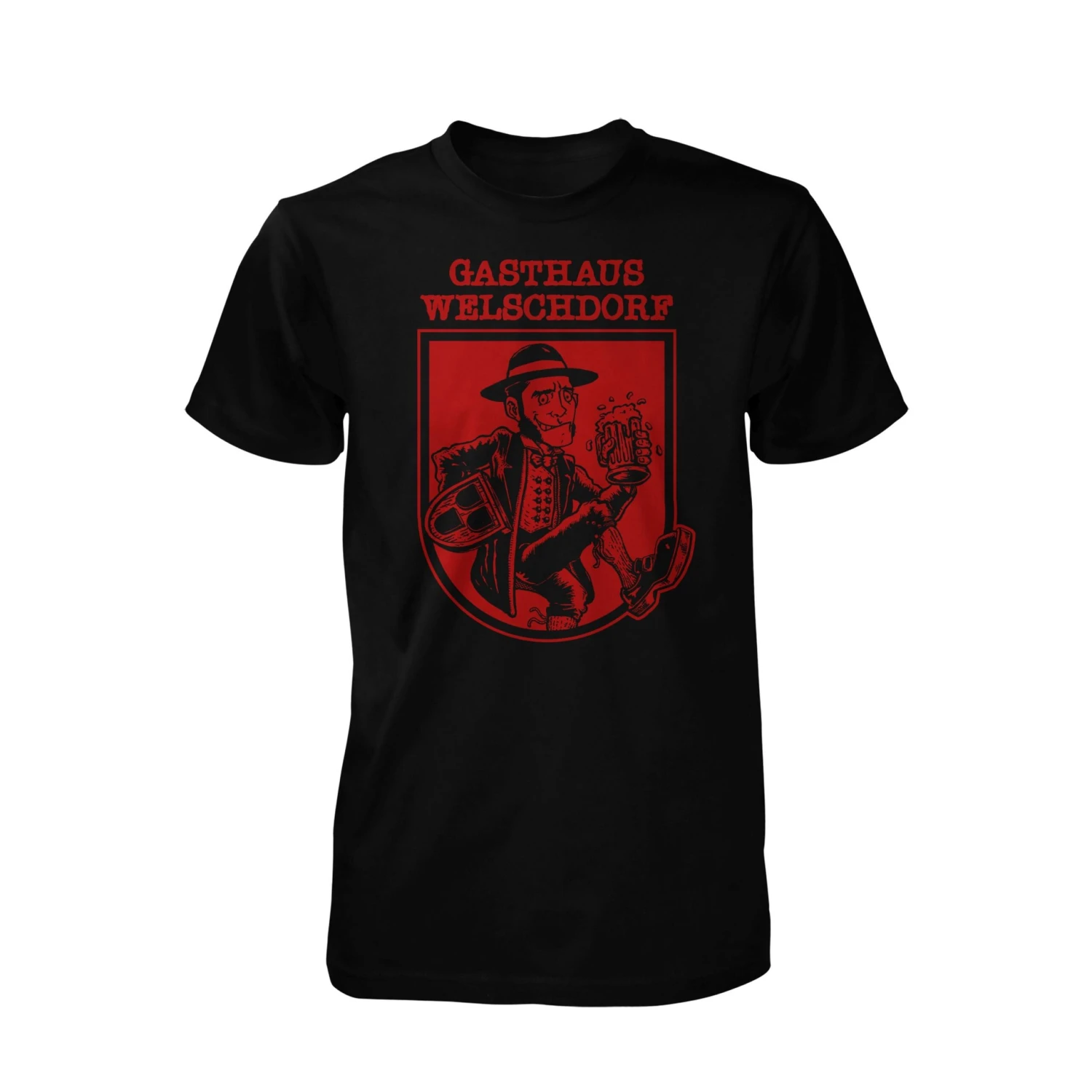 T-Shirt von unserem Gasthaus Welschdorf. Großer roter Brustlogo Druck.</p>n