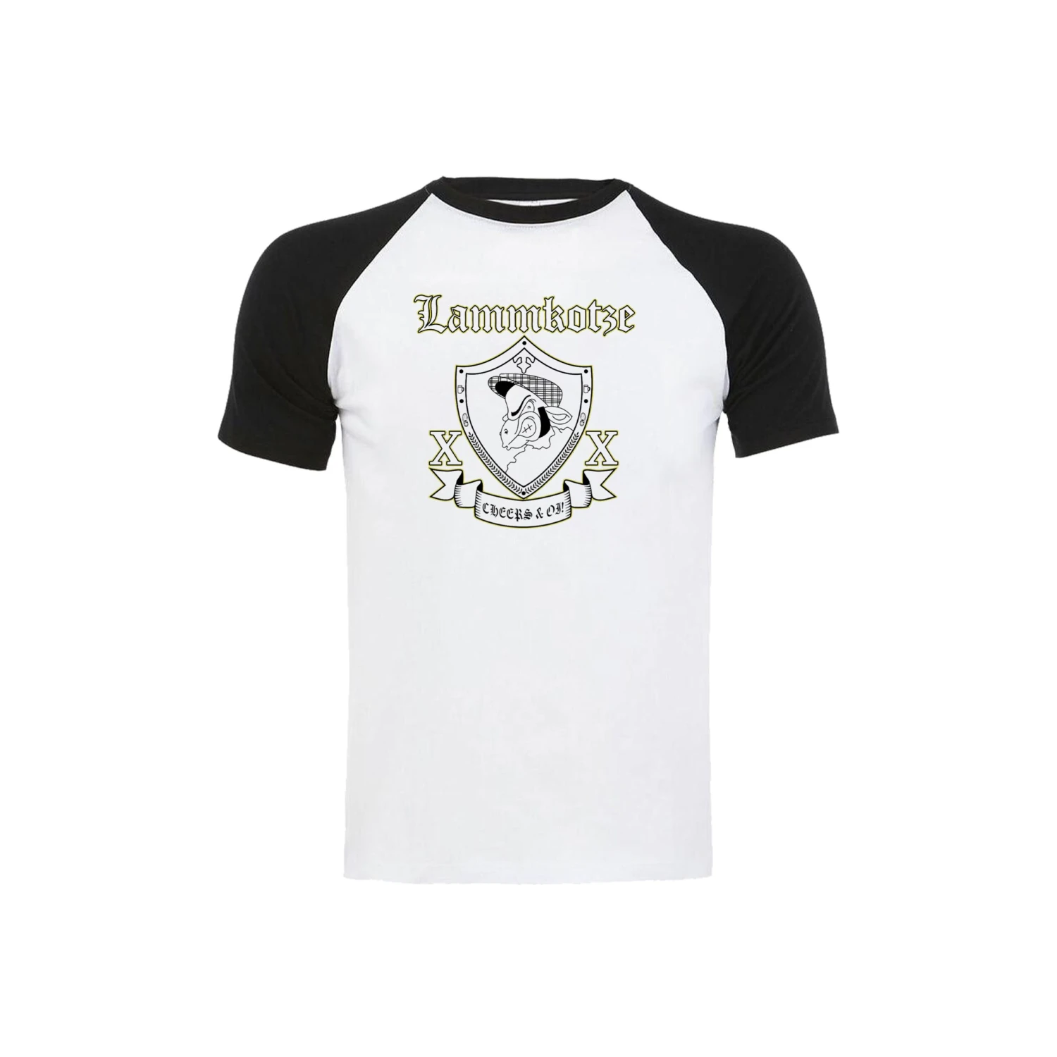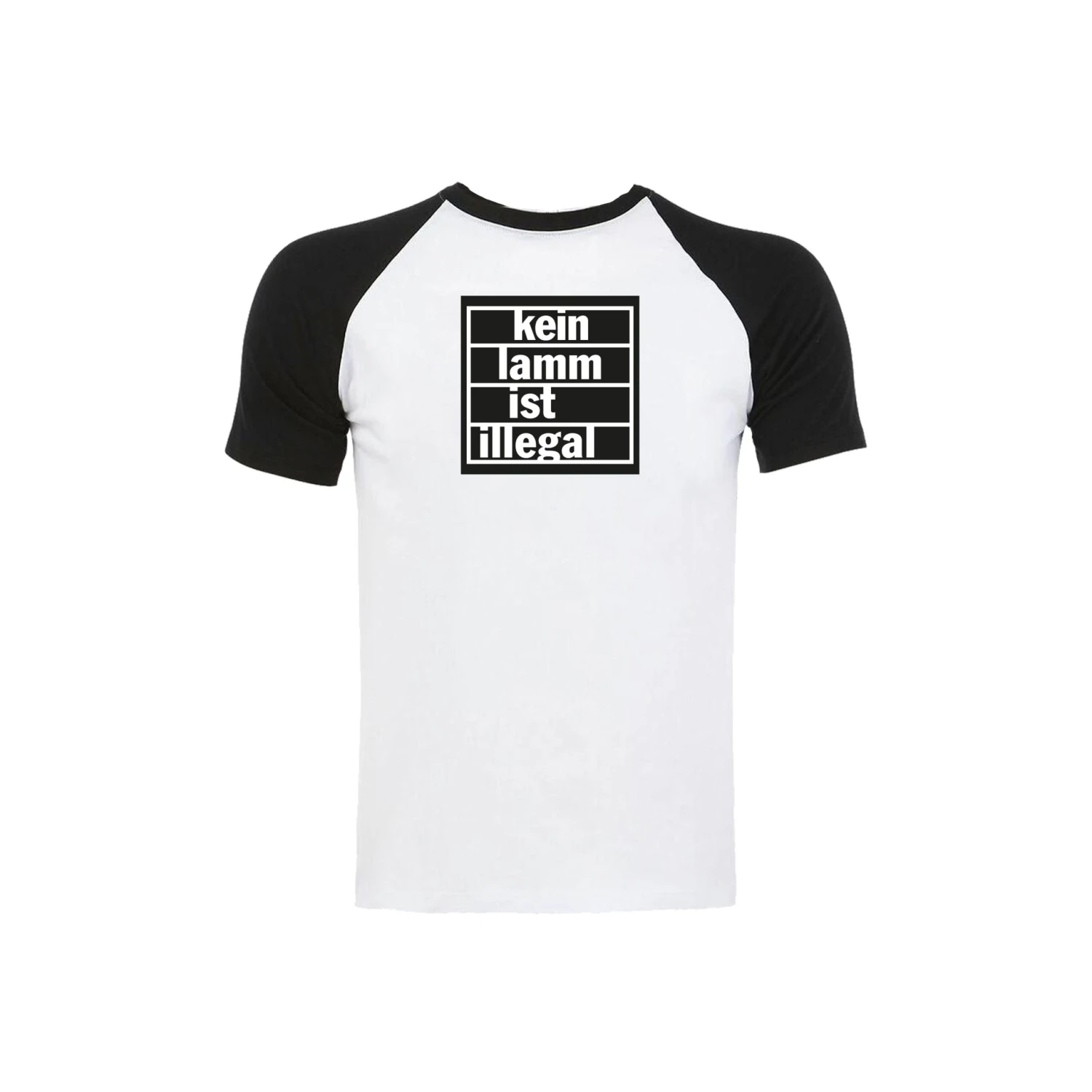 Weißes Fruit of the Loom T-Shirt Baseball Version mit schwarzen Ärmeln.</p>n